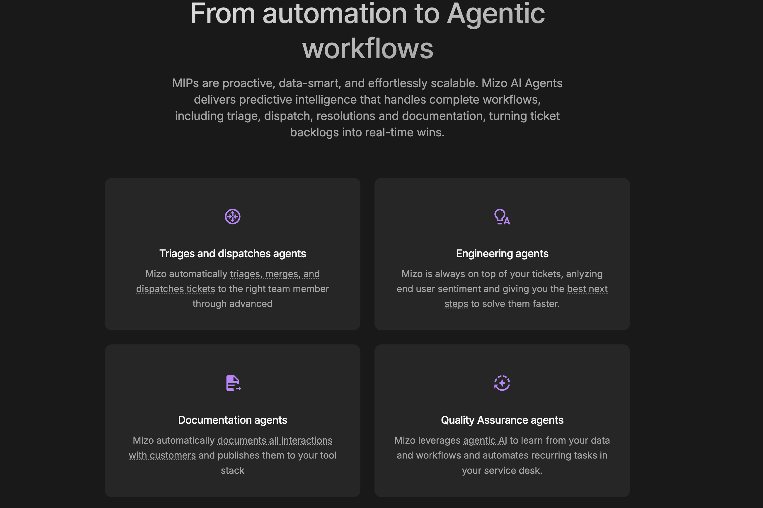 Complete workflow automation with specialized agents for triage, dispatch, resolution, documentation, CX, and QA